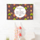 Una pancarta diseñada con un lindo patrón de camping. Acampada temática como fogata naranja, carpa verde, guitarra acústica y otros elementos naturales como árboles, hojas, mochila, pala y cantina. Patrón de outdoorsy de Guay. Un círculo blanco se cubrió encima con tu texto personalizado dentro. Ideal para reuniones familiares.