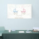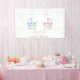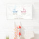 Dos coches de bebé aparecen en esta linda pancarta de Su o Ella, ¿Qué será el bebé, el Fiesta revelador de género? En esta pancarta fiesta encontrarás un cochecito rosa y un cochecito azul para acoger a los clientes en tu evento. Elegante tipo de letra de guión en rosa y azul. Personaliza con tus nombres.