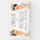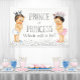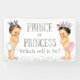 Estandarte de revelación de género con adorable príncipe y princesa de pelo oscuro sobre un bonito fondo de brillo plateado. Puedes personalizar con el texto de tu elección, y también puedes cambiar el color de fondo en este estandarte de revelación de género. Este es un diseño impreso sin brillo real.