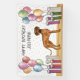 El original ilustracion personalizado de Destei de un lindo perro de raza Ridgeback. El perro está situado en un entorno de colorido cumpleaños con globos y regalos de cumpleaños de color pastel. Los colores pastel son rosa, verde, azul, rojo, naranja y violeta. El perro está parado en una textura de parqué amarillo y el fondo tiene un juego de puntos polka de color pastel. También hay un área de texto personalizable.