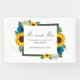 El diseño presenta elegantes girasoles, rosas y margaritas con una paleta de colores dorados amarillo, verde azulado y blanco. El diseño también incluye un marco gris de carbón vegetal. Puede cambiar el color de fondo en la parte delantera y de vuelta al color de su elección o dejar ambos en blanco.