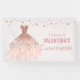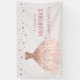 Banner de fondo de la moda Rosa Gold Dress Quinceañera, con un hermoso vestido de rosa de bolas de oro, colores pastel y acentos rosas de purpurina de oro para coincidir con nuestra colección Rosa Gold Gown Quinceanera. Personalízalo con tus detalles de forma fácil y rápida, simplemente pulsa el botón personalizar it para reorganizar y formatear el estilo y la ubicación del texto. La decoración perfecta para tu Quinceañera. ¡Artículos coincidentes disponibles en la tienda! c) El estudio Happy Cat Studio