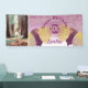 Cartel festivo con Rosa Purpurina de oro, globos Fiestas y foto para ella.