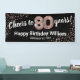 Celebra un cumpleaños histórico con estilo con nuestra elegante pancarta de cumpleaños número 80. Con un elegante fondo negro de personalizable, un falso brillo de oro rosa y un moderno texto de celebración de los 80 años, este cartel es la manera perfecta de hacer una declaración. Además, nuestros ochenta globos de helio de oro rosa le dan un toque extra de glamour. Personalice fácilmente este banner para marcar el día especial con elegancia y sofisticación.