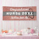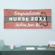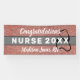 ¡Sorprenda a su enfermera graduada con un gran cartel moderno para decir felicitaciones! Esta pancarta está diseñada con un fondo purpurina de imitación de color rosa rosado de moda, una franja horizontal gris y una silueta de estetoscopio negro en el centro. "Enfermera de felicitaciones" está en negrita con un guión en blanco mezclado con letras en bloque. El año de graduación y el nombre completo y el título de la enfermera se escriben simplemente haciendo clic en la opción personalizar plantilla.