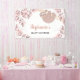 Añade este encantador Banner de Baby Shower a tu celebración. Cuenta con un purpurina rosa de oro bonito que sonríe y cuelga de un árbol rodeado de hojas de acuarela en tonos rosas. Puedes personalizar el cartel de la ducha de bebé de esta niña cambiando el nombre. Acuarela original © Michele Davies.