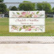 Banner de Boda suave de color rosa Rosa acuático diseñado con elegantes rosas de acuarela floral en rosa suave, con tonos de hojas verdes profundas. Para personalizar, simplemente inserte el nombre de la novia y la fecha de Boda de Groom, reemplazando el texto de ejemplo. Asegúrese de ver la colección completa de Bodas suaves de Rosas acuarelas para accesorios que coincidan.