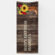 Pancarta de "Feliz Cumpleaños" fiesta personalizado con botas rústicas de vaquero, girasoles amarillos brillantes y hermosas rosas rojas sobre un fondo de madera marrón oscura. Personaliza con el nombre del invitado de honor.