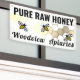 Tonos dorados de abeja y una abeja de miel estilizada con la descripción de su producto en negrita: es decir, PURE RAW HONEY o LOCAL HONEY en esta pancarta al aire libre está diseñada para llamar la atención sobre su producto en una señal audaz que es fácil de colocar en, delante, detrás o encima de la mesa del mercado de agricultores. Tonos dorados de abeja y una abeja de miel estilizada con la descripción de su producto en negrita: por ejemplo, PURE RAW HONEY o LOCAL HONEY