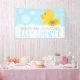 It's a Boy! ¿Está planeando un baño de burbujas o una ducha de bebé con temática de pato? El Banner de Baby Shower Rubber Ducky Boy es una opción adorable para las duchas de bebé para los niños. Tiene un pato amarillo dulce con un corazón azul en el ala rodeado de burbujas de baño. Esta pancarta fiesta le aporta un toque especial a la decoración de la ducha. No te olvides de vincular el tema fiesta con la coordinación de productos diseñados por Enchantcapy Design Company.
