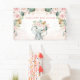 Pancarta de fiesta con temática de la jungla, con un elefante de bebé dulce y una elegante vegetación tropical acuática y flores de color rosa y rubio. Artículos coincidentes disponibles en nuestra tienda!
