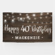 Rustic String Lights on Wood Birthday Banner para anunciar su 40 cumpleaños con estilo! El lado rústico de la madera y las luces de cuerda habilitan el espacio para el texto personalizado. ¡Ideal para fiestas de cumpleaños y recepciones! Fácil de personalizar con texto, fuentes y colores. ¡Incluso puedes cambiar el color de la tipografía!