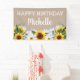 Sombrillas rusticas amarillas y marrones y marrones blancos en la pancarta marrón "Feliz cumpleaños". Personalizado con el nombre del invitado de honor. Contáctame para obtener ayuda sobre la personalización o para solicitar productos coincidentes.