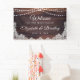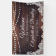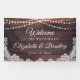 Bienvenidos a un boda (o a otro evento boda como recepción, ducha de novia, ducha de pareja, etc. ya que todo el texto es editable) con este cartel que incluye madera rústica, luces de cuerda y encaje blanco para un boda de campo, granero, vintage o exterior. Póngase en contacto con el diseñador a través de Zazzle Chat o makeitaboutyoustore@gmail.com si desea modificar este diseño, en otro producto o en elementos de coordinación.
