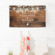 This rustic wood string lights wedding welcome banner sign can be personalized with your information in modern typography. Designed by Thisisnotme©