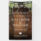 This rustic wood string lights with greenery wedding welcome sign banner can be personalized with your information in elegant typography. Designed by Thisisnotme©