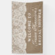 Esta rústica burlap y la vintage pancarta de ducha de novia en encaje blanco harán el accesorio perfecto para cualquier futura novia. El diseño presenta un bonito fondo rústico con efecto burlap y un romántico adorno con efecto de encaje blanco vintage. Esta plantilla de banner puede ser personalizada para su ocasión especial y sería la invitación perfecta para cualquier boda rústico, ducha de novia, fiesta de compromiso, fiesta de cumpleaños y mucho, mucho más. *Tenga en cuenta que Zazzle sólo vende banners impresos para que este banner no tenga ningún material de color o arpillera.