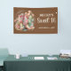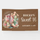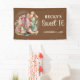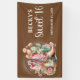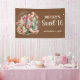 Pancarta dulce de personalizado de 16 años diseñada con un fondo marrón rústico con botas de vaquera y rosas rosadas. Personalizado con el nombre de la invitada de honor y su fecha fiesta.