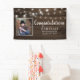 Rustic String Lights Wood Graduation Banner para anunciar tu graduación con estilo! El lado rústico de la madera y las luces de cuerda habilitan el espacio para el texto personalizado. ¡Excelente para recepciones de graduación y fiestas! Fácil de personalizar con texto, fuentes y colores. Creado por el diseñador Zazzle pro BK Thompson © exclusivamente para Kate's Creations; por favor contáctenos si necesita ayuda, si tiene preguntas o si desea saber sobre el trabajo de los personalizados.
