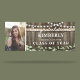 Celebra el éxito de tu graduación con un toque rústico de elegancia. Este banner de la fiesta de graduación aporta el encanto de un granero de campo con su fondo de barrica de roble a su lugar. Personalízalo con una foto del graduado entre luces de cuerda relucientes y exuberante vegetación. La plantilla de texto en blanco le permite agregar su mensaje con estilo. Una combinación perfecta de encanto rústico y diseño elegante para marcar este hito en su vida.