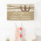 Este rústico banner de kraft, encaje y ducha de novias de herradura hará el accesorio perfecto para cualquier futura novia. El diseño presenta un bonito efecto kraft rústico con un romántico efecto de encaje blanco vintage y dos afortunadas herraduras entrelazadas y gemelos. Esta plantilla de banner puede ser personalizada para su ocasión especial y sería la invitación perfecta para cualquier boda rústico, ducha de novia, fiesta de compromiso, fiesta de cumpleaños y mucho, mucho más. *Tenga en cuenta que Zazzle sólo vende banners impresos para que este banner no tenga ningún material real de kraft, encaje, herradura o twine.