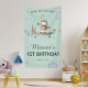 This soft sage aviation design features a happy little pilot soaring through gentle skies, surrounded by clouds and tiny stars. The sweet “Oh my, how time flies” message makes it perfect for celebrating one magical year. A charming, modern backdrop for your baby boy’s first big adventure.