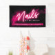 Añade tu nombre y tu lema o tipo de negocio a este moderno banner de negocios para un salón de uñas o técnico de uñas, con humo rosa sobre un fondo negro con la palabra "uñas" en neón rosa. Si necesitas ayuda para personalizar esto, por favor envíame un mensaje usando el botón de abajo y estaré encantado de ayudarte.