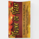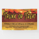 Banner de Trunk o Treat fácil de leer para anunciar tu divertido evento de grupo comunitario. Añade la fecha y hora, la ubicación y los detalles de tu evento para comunicar tu fiesta de fiesta de otoño. Invitar a todos a un truco seguro o tratar a un fiesta. Tipografía de estilo moderno con hojas de otoño naranja.