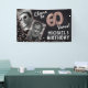 ¡Celebrando haber cumplido 60! Este banner te permite subir una foto antes y después del hombre o mujer de cumpleaños, con el divertido título '¡Saludos a 60 años!'. Con un fondo rústico de pizarra negra, rosas falsos de oro con sesenta globos de helio y rosas falsos de purpurina de oro confetti. ¡Sólo personaliza el nombre, la fecha y la viola!