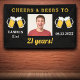 Celebra el gran 2-1 con este cartel de "Saludos y cervezas" de 21 años de cumpleaños. Con su propia foto y un audaz diseño de celebración, este cartel es perfecto para decorar el espacio de su fiesta y hace un toque divertido después de la celebración.