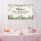 Pancarta del primer cumpleaños del salvaje Safari tropical