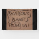 Salvemos nuestro planeta de nuestro cartel en castaño caqui con frontera negra más palabras.