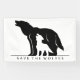 Este es un diseño blanco y negro de un lobo aullante con su cachorro de lobo. Muchas especies de lobos (incluido el lobo gris) siguen en peligro. El texto dice "Salven a los lobos". Este diseño se puede personalizar agregando tu propio texto o imágenes.