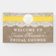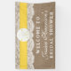 ¡Este cartel de ducha de novia de un dólar de arena amarilla será el accesorio perfecto para cualquier futura novia! El diseño presenta un bonito fondo rústico con efecto burlap y un romántico efecto de encaje blanco vintage, decorado con un impresionante dólar de arena sobre una cinta amarilla. Esta plantilla de banner puede ser personalizada para su ocasión especial y sería el accesorio perfecto para cualquier boda rústica en la playa, ducha de novia, fiesta de compromiso, fiesta de cumpleaños y mucho, mucho más. *Tenga en cuenta que Zazzle sólo vende banners impresos para que este banner no tenga ningún material real de color burlap, lace, arena, dólar o cinta.