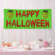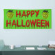 Bandera de Frankenstein del feliz Halloween del efecto de la sangre del goteo en un fondo verde.
