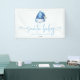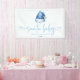 ¡Esta es una pancarta para la fiesta de bebé de Santa Baby con sombrero azul de Navidad!