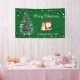 La elegante pancarta de los Navidades presenta un lindo Santa con reno y árbol de Navidad, rodeado de coloridas luces de cuerda sobre un fondo verde. Personalízalo con tu nombre.