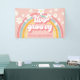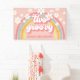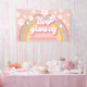 ¡Dos Groovy! Banner de 2º cumpleaños inspirado en el retro con fuentes y colores de estilo 70, arcoiris y margaritas en rosa