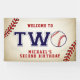 Es uno, DOS!! Este banner de béisbol de segundo cumpleaños de estilo vintage creará un espacio super lindo para dar la bienvenida a sus invitados o para tomar una foto. Está diseñado con un fondo vintage de estilo rústico con hilos de béisbol alrededor de los bordes.