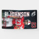 Personalized senior sports banner for athlete and sports player. This customizable design template is perfect for homecoming sports event, senior night, sports award banquet or graduation party décor for your athlete son, daughter or student. It's a great way to display player portrait and memories from their sports games. The design features a football field background, and it can be customized with names, player jersey number, school teams or any custom text. It makes a unique and meaningful decoration for your player.