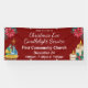 Invite a su comunidad a celebrar la temporada con su iglesia utilizando esta pancarta personalizable para el Servicio de Velas de Nochebuena. Esta pancarta de iglesia de 2' x 6' está disponible en materiales para interiores y exteriores y viene con la opción de incluir ojales para una fácil colocación. El diseño festivo presenta un fondo rojo, poinsettias rojas en las esquinas superiores, una ilustración de la natividad en la parte inferior izquierda para conmemorar el nacimiento de Jesús, y velas de Navidad encendidas con hojas de acebo en la esquina derecha. La pancarta dice 'Únase a nosotros para un Servicio de Velas de Nochebuena', con texto totalmente personalizable para incluir el nombre de su iglesia, fecha del evento y horarios de los servicios. Perfecta para promocionar el evento de Navidad de su iglesia, esta pancarta es una forma ideal de difundir el mensaje de fe, confraternidad