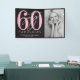 Celebra con estilo con esta moderna pancarta de fiesta, perfecta para una celebración de cumpleaños "Sesenta y Fabuloso" o cualquier evento importante. El diseño en el lado izquierdo presenta un gran "60" rosa con la palabra "sesenta" escrita en elegante letra cursiva blanca superpuesta. Justo debajo, "fabuloso" aparece en negrita en una fuente sans serif blanca para un aspecto elegante y moderno.