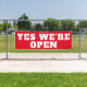 Lona Sí, estamos abiertos Negrita Negocio Blanco Rojo E