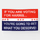 Si votas por Harris... ¡Vas a conseguir lo que mereces! Ver más diseños políticos populares como este tipo ilovemycountry en barra de búsqueda zazzle.