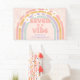 El Seven, de inspiración retro, es un cartel de 7 años de la Vibe con un arcoiris pastel de estilo hippie y margaritas