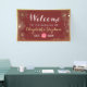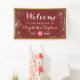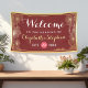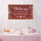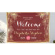 Plantillas de banner de bienvenida boda - Elegante Guión con letras doradas y marco floral dorado vintage sobre fondo de damasco rojo. Un diseño perfecto para tu gran día. ¡Todo el estilo de texto, colores, tamaños se pueden modificar para adaptarlo a sus necesidades!