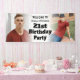 Signo de bienvenida moderno para los hombres fiestas de 21 años. Banner personalizado con un collage moderno de dos fotos y letras en negrita. Para uso interno o externo. Para cambiar la ubicación de la foto: pulse sobre el botón para personalizar del diseño, pulse sobre "recorte" y mueva la imagen para centrarla.