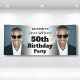 Signo de bienvenida de la moderna fiesta de cumpleaños número 50 para hombres. Banner personalizado con un collage moderno de dos fotos y letras en negrita. Para uso interno o externo. Para cambiar la ubicación de la foto: pulse sobre el botón para personalizar del diseño, pulse sobre "recorte" y mueva la imagen para centrarla.
