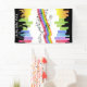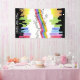 Ilustracion vectorial de fondo musical con silueta de gente bailando. Dibujo colorido de un poster fiesta.