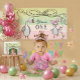 Designed with a sophisticated Grandmillennial flair, the layout includes a delicate light green and pink wash, accented by a classic hand-painted black ribbon bow and sweet florals. Perfect for cake smash photos, gift table backdrops, or outdoor garden parties. This is 100% unique artwork—no AI-generated imagery—ensuring a boutique, high-end look for your celebration.